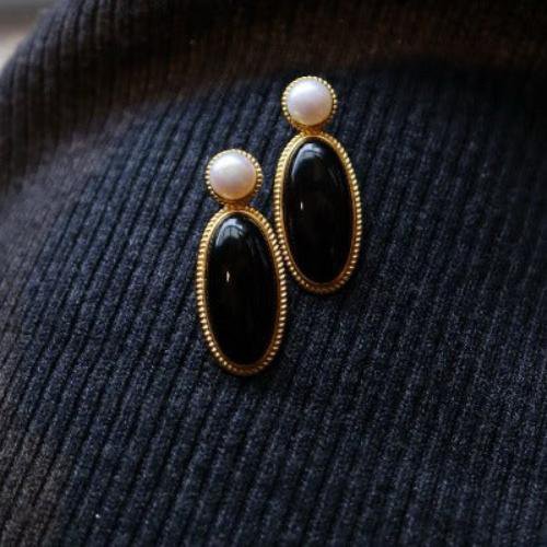 Eleganz trifft Vintage – Schwarze Onyx-Ohrringe mit Süßwasserperle