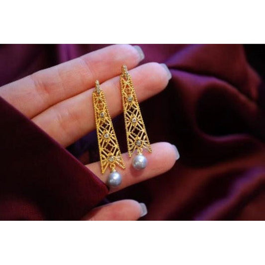 Königliche Drop-Ohrringe mit japanischen Aukoya-Perlen & Zirkonia – Eleganz in Perfektion