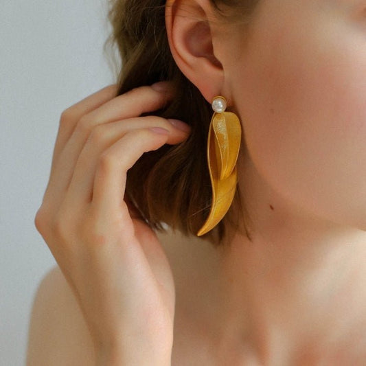 Goldene Blattohrringe mit Süßwasserperle – Vintage-Charme trifft Statement-Stil